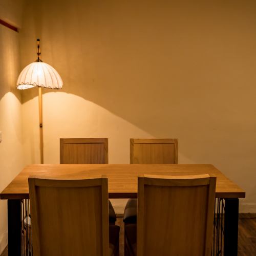 着物をリメイクした内装や、木のぬくもりを感じるテーブルが特徴です。グループでのご利用や、大切な方との語らいの場として、ゆったりとお酒をお楽しみください。